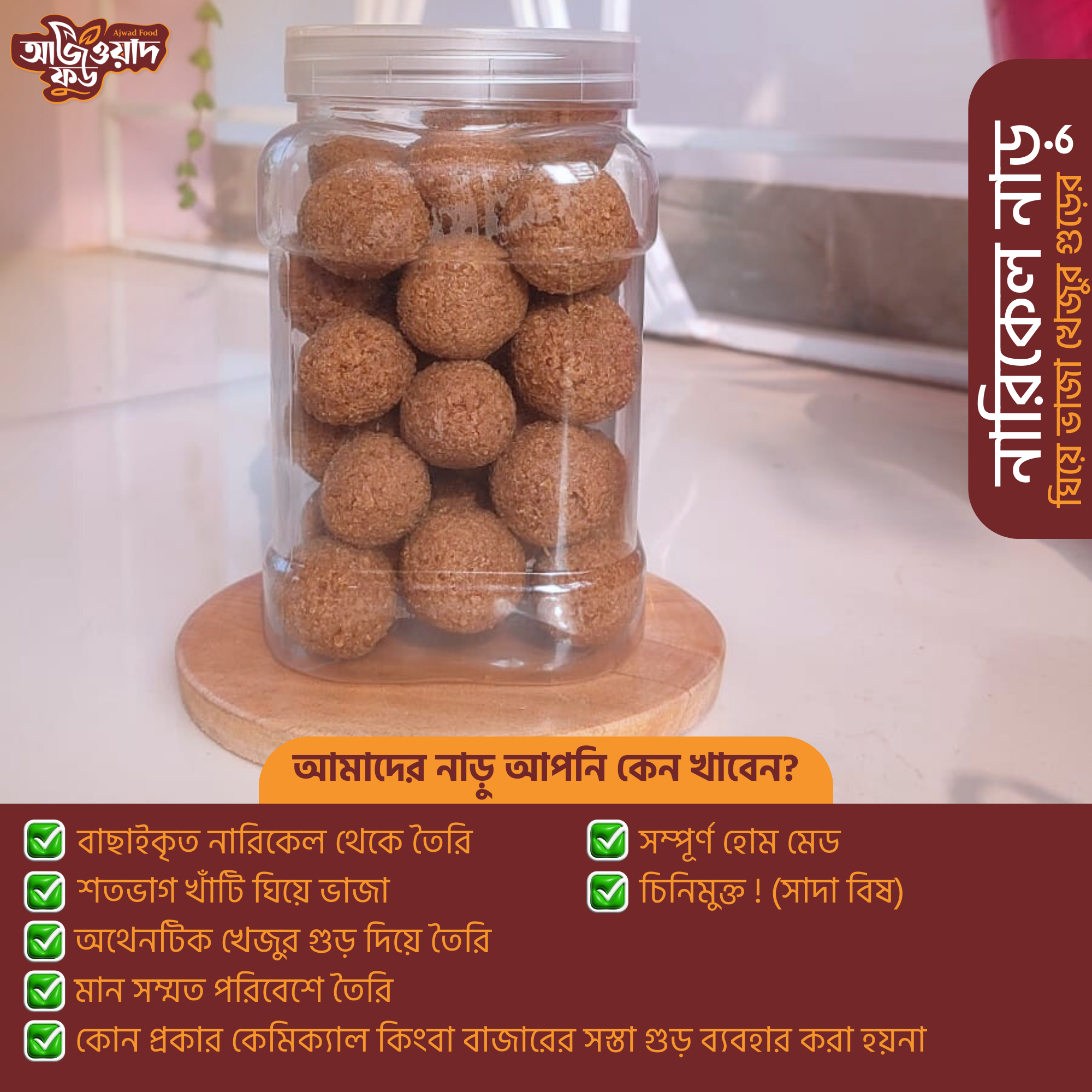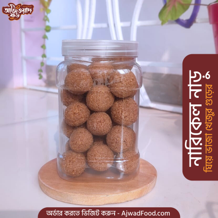 কিংবা ১/২ ক্লিকে সরাসরি ওয়েবসাইট থেকে অর্ডার করুন- www.AjwadFood.com/coconutladdu-500gm/